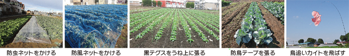 - 寒さを受けやすい畑は、寒さ除けに寒冷紗などでトンネル被覆すると効果的です。被覆期間は、おおむね12月下旬から3月中旬です。