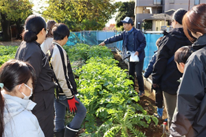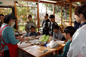 収穫体験付親子料理教室を行いました 11月29日(土)、立川地区の組合員、豊泉裕さんが運営する「スマイル農園・スマイルキッチン」で収穫体験付親子料理教室を行いました。親子5組11人が参加し、豊泉さんが栽培した野菜を収穫しました。料理教室では昭島地区の組合員、指田聡子さんを講師に招き、「根菜カレー」と「白菜のコールスローサラダ」を料理し、参加者からは大変好評なイベントとなりました。