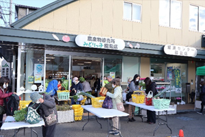 みどりっ子昭島店に立川ダイスがやってきました 12月22日(月)、みどりっ子昭島店にてプロバスケットボールチーム「立川ダイス」とのコラボイベントが行われました。収穫セールには、大﨑翔太選手が同店を訪れ、特設販売ブースで昭島産野菜を販売し、消費者や生産者と交流を図りながら地域の農業と昭島産農畜産物のPRを行いました。