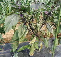 半身いちょう病で葉が茶色くなり、しおれたナス