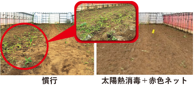 赤色防虫ネット及び太陽熱消毒による害虫・雑草防除(施設コマツナ)