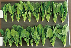 10~12月にかけて播種するホウレンソウでは、べと病の発生が問題となっていました。べと病は、病原性が異なる「レース」が多数存在し、防除を困難にしています。そこで、多くのレースに抵抗性を持つ2品種について特性を調査しました。