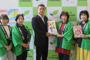 女性部が各地で寄付活動を行いました 9月18日(木)、昭島市・立川市・武蔵村山市・東大和市の4地区で女性部による寄付活動が行われました。社会福祉協議会へ子供向け教育誌「ちゃぐりん」と提携するJAみなみ魚沼産の「コシヒカリ」をしました。寄付品は社協を通じて地域のこども食堂などに活用されます。
