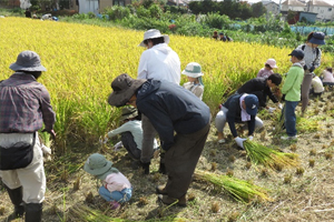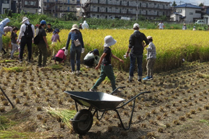 昭島市で親子米つくり教室が行われました 9月28日(日)、昭島市で「親子米つくり教室」が行われました。昭島市米生産組合の協力のもと親子50名が参加し、300kg以上のお米が収穫され大変好評なイベントとなりました。