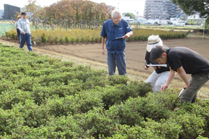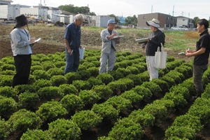 第30回東京都委託苗木立毛品評会が行われました 10月8日(水)、第30回東京都委託苗木立毛品評会が行われました。立川・武蔵村山・東大和の3地区4圃場を巡回し審査が行われ、最優秀賞には武蔵村山地区の石川裕一さんのヒラドツツジが選ばれました。