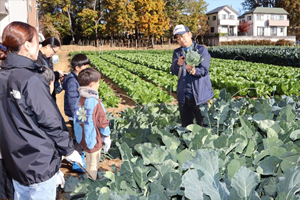 収穫体験付親子料理教室を行いました 11月29日(土)、立川地区の組合員、豊泉裕さんが運営する「スマイル農園・スマイルキッチン」で収穫体験付親子料理教室を行いました。親子5組11人が参加し、豊泉さんが栽培した野菜を収穫しました。料理教室では昭島地区の組合員、指田聡子さんを講師に招き、「根菜カレー」と「白菜のコールスローサラダ」を料理し、参加者からは大変好評なイベントとなりました。